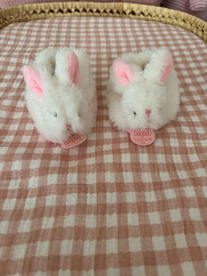 Adorables petits chaussons hochet souples lapin Je dirais de la naissance à 2/3 mois Neufs