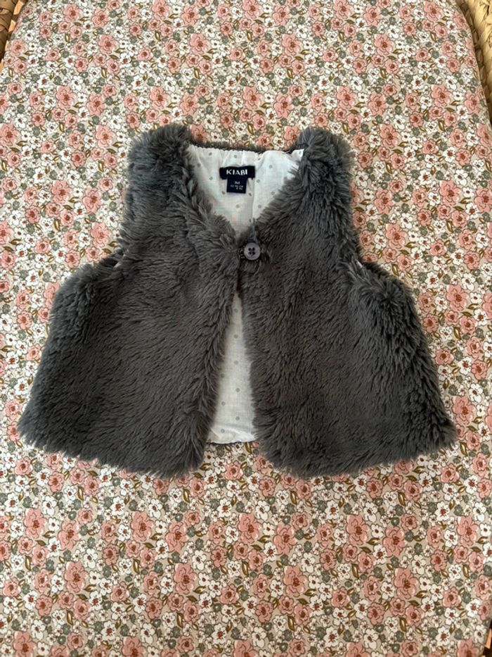 Joli petit gilet sans manches en moumoute grise Comme neuf, porté une fois