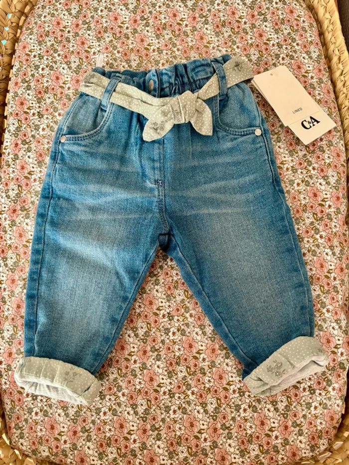 Adorable petit jean pour bébé fille Neuf, valeurs 17,99€ indiqué 6-9mois / 74 cm, C&A taille grand, il faut plus se fier à la taille et non à l’âge