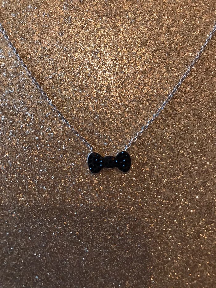 Collier en argent avec petit noeud en céramique et strass Swarovski Livré avec son pochon Neuf