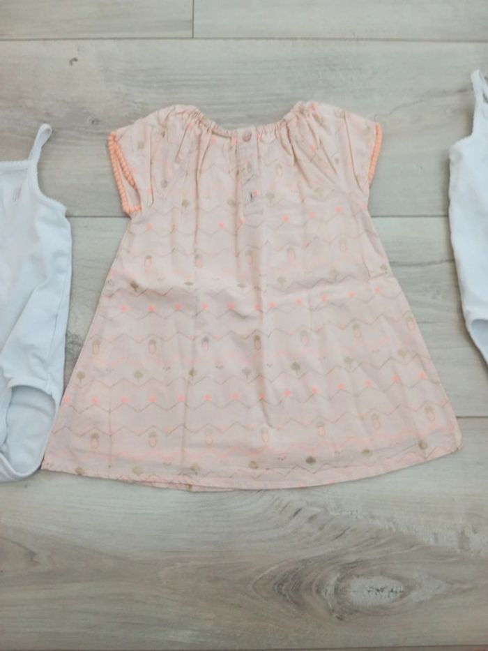 Lot comprenant - 2 bodies a bretelles orchestra 9 mois - 1 robe été tape à l'oeil 9 mois