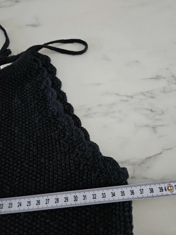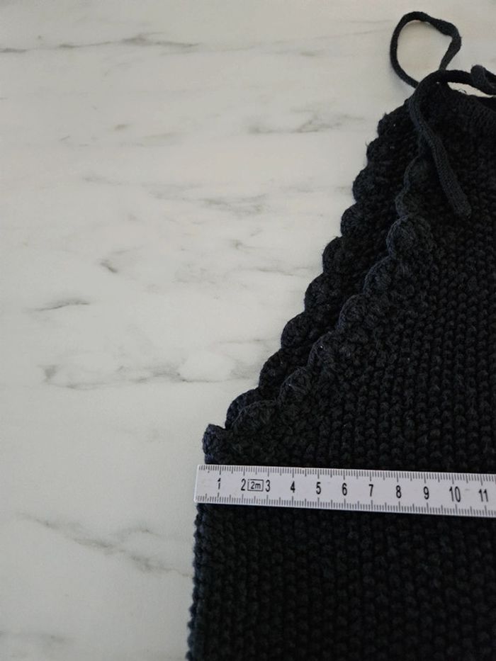 Aspect laine. Porté mais il reste en bon état voir très bon. A nouer dans le cou. Dimensions sur les photos et il est noir
