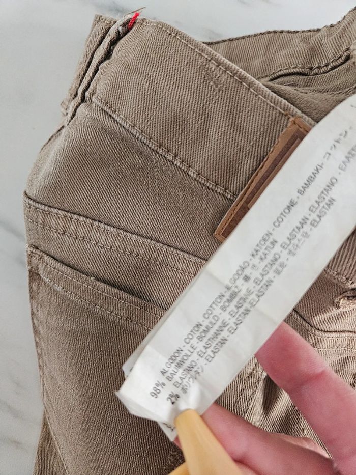 Couleur entre marron et kaki. Il est en parfait état. 34 mais taille petit. Dimensions sur les photos
