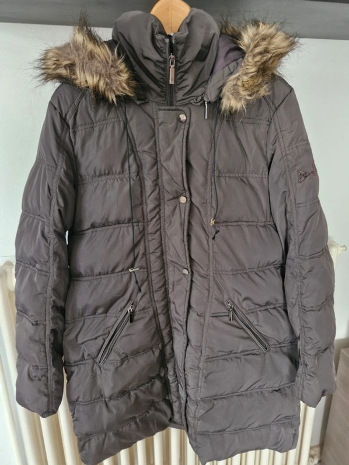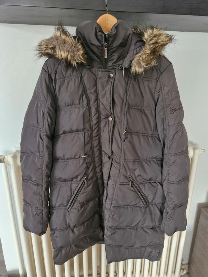 Doudoune veste longue chaude en duvet Gris taupe Capuche amovible par fermeture éclair La fausse fourrure peut aussi s'enlever de la capuche (boutons) Poches zippées Pas de ceinture Pas d'étiquette de composition et de taille Dimension à plat sous les aisselles : 57 cm Longueur totale de l'épaule au bas : 90 cm Correspond à un 42/44 Réductions activées sur les lots ↘️✅️🤑 #vestesofi1804 #taille42sofi1804 #taille44sofi1804