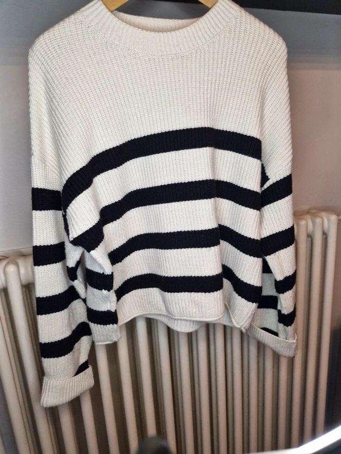 Pull rayé blanc et noir Pull & bear - photo numéro 1