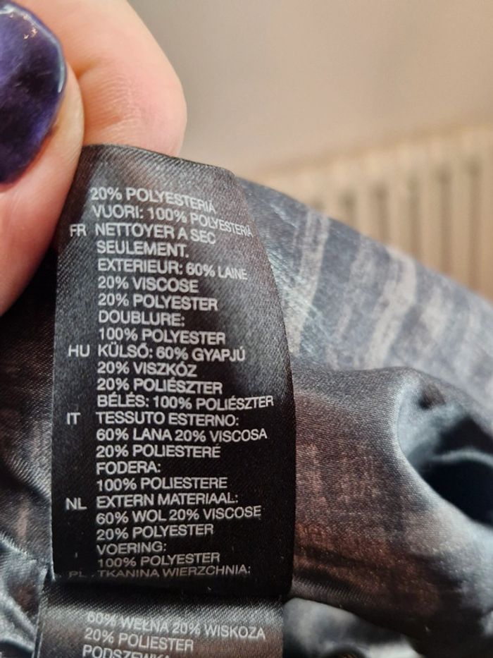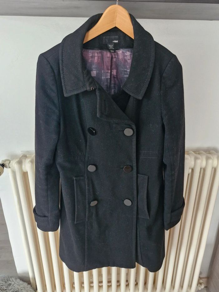Manteau caban noire Marque H&M Taille 40 Extérieur 60% laine, 20% viscose, 20% Polyester Doublure : 100% Polyester Dimensions à plat sous les aisselles : 49 cm Longueur totale de l'épaule au bas : 85 cm