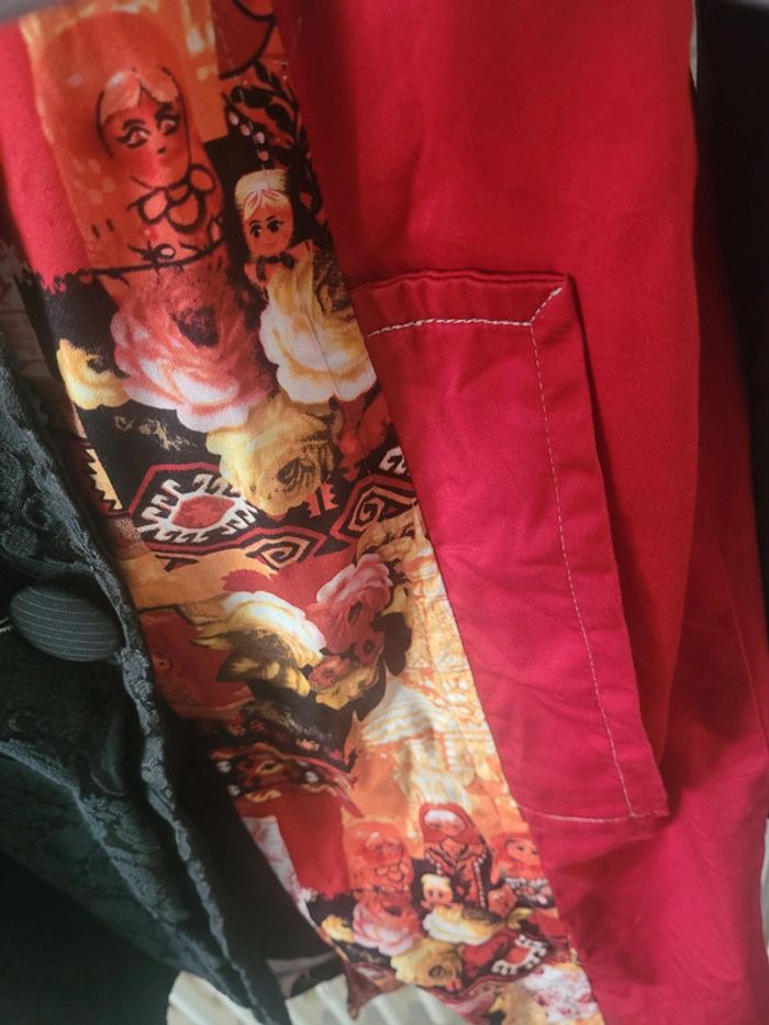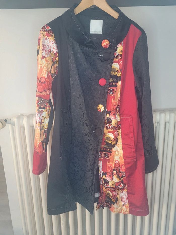 Manteau léger Marque Cache Cache Style Desigual mamouchka russes Fermeture par boutons Taille 4 Dimensions à plat sous les aisselles : 52 cm Longueur totale de l'épaule au bas : 86 cm La doublure a été recousu à un endroit : visible sur la dernière photo 50% coton, 26% polyester, 20% viscose, 4% elasthane Doublure 100% polyester Réductions activées sur les lots ↘️ ✅️ 🤑 #manteausofi1804 #taille42sofi1804 #desigualsofi1804