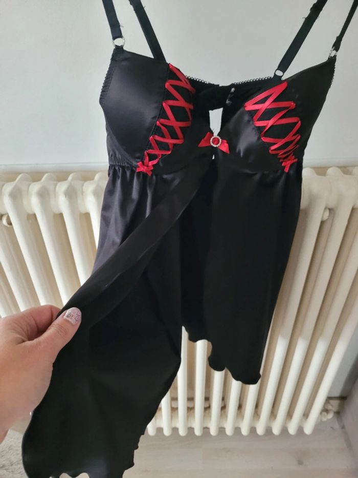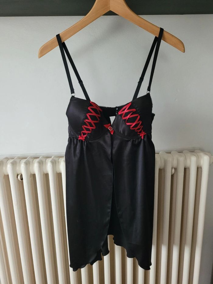 Nuisette déshabillée noire Laçage rouge sur la poitrine, petit nœud au milieu du soutien gorge Soutien gorge coque Correspond à un 38 Pas d'étiquette de taille et composition Jamais porté Il me semble que je l'avais acheté chez kiabi Réductions activées sur les lots ↘️ ✅️ 🤑 #taille38sofi1804