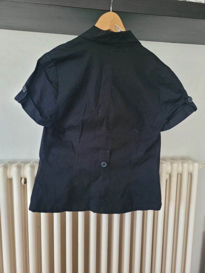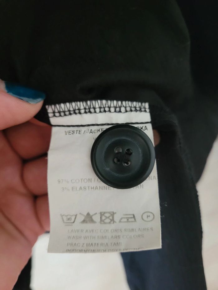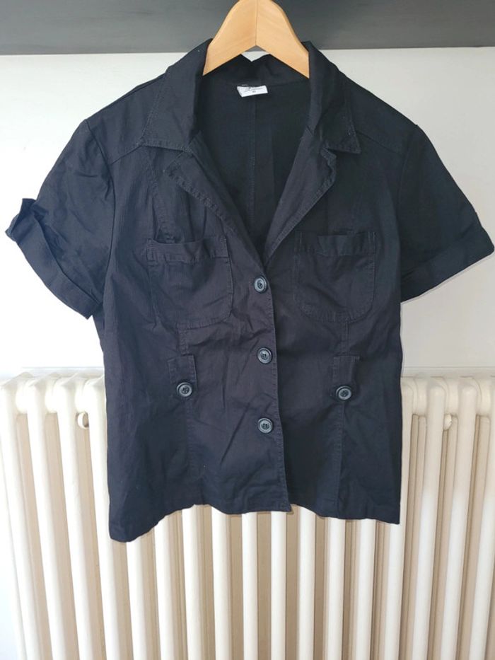 Veste manches courtes à boutons avec ceinture du même tissu (pas sur les photos) Noire avec rayures discrètes Plutôt courte Marque Jacqueline Riu Taille 42 Dimensions à plat sous les aisselles : 46cm Longueur totale (épaules au bas) : 56cm devant et 58cm derrière Réductions activées sur les lots ↘️ ✅️ 🤑 #taille42sofi1804 #vestesofi1804
