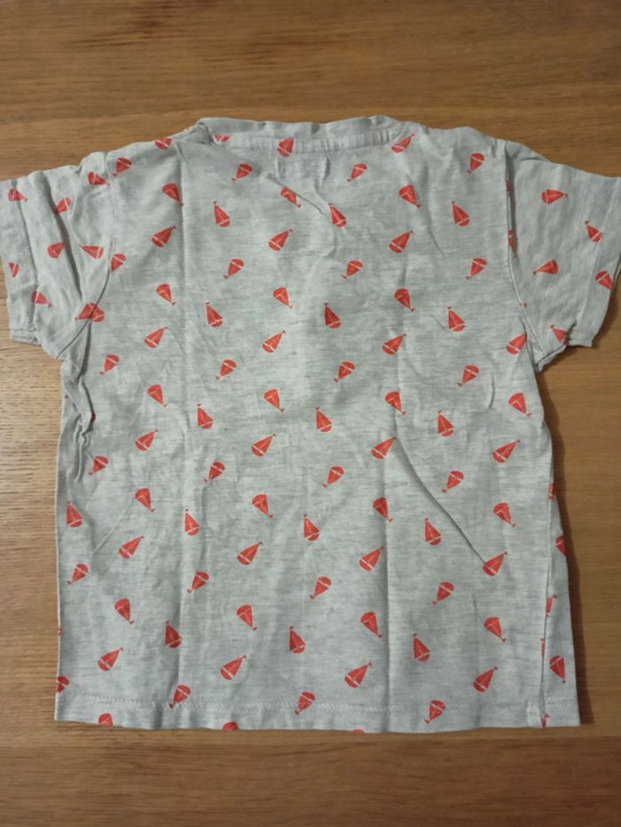 T-shirt manches courtes 24 mois gris avec des bateaux orange dessus. Très bon état, pas de tâches ni trou. Possibilité de faire des lots pour bénéficier des réductions 😊