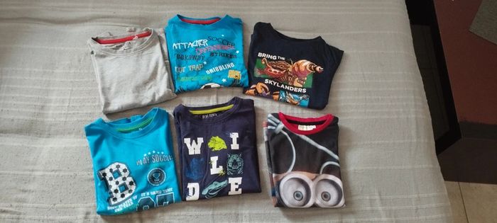 Lot de 6 tee-shirts manches courtes taille 8 ans Toutes marques (Minion, bleue seven etc) Quelques marques d'imperfections possible visibles en photos