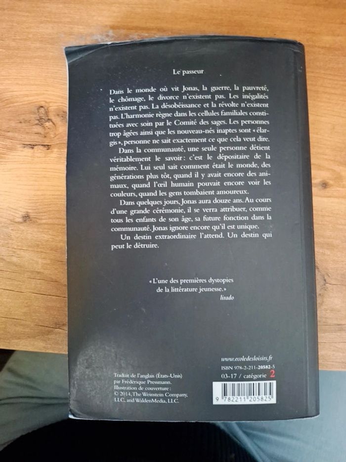 Livre Le passeur Lu au collège Quelques marques d'imperfections visibles en photos