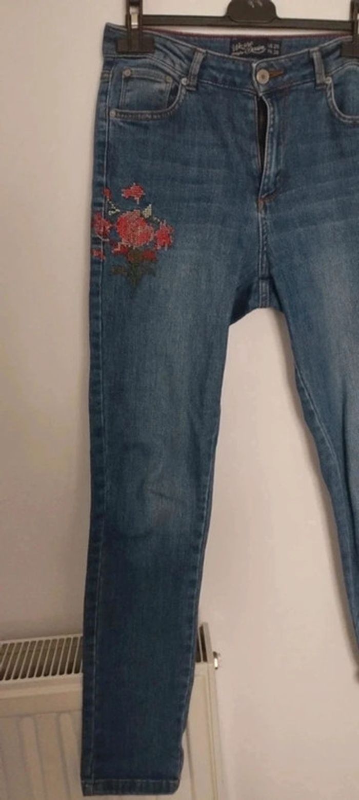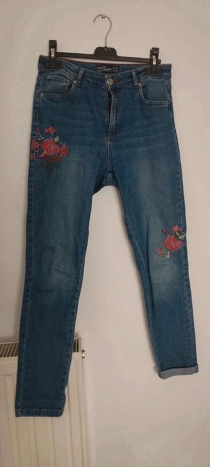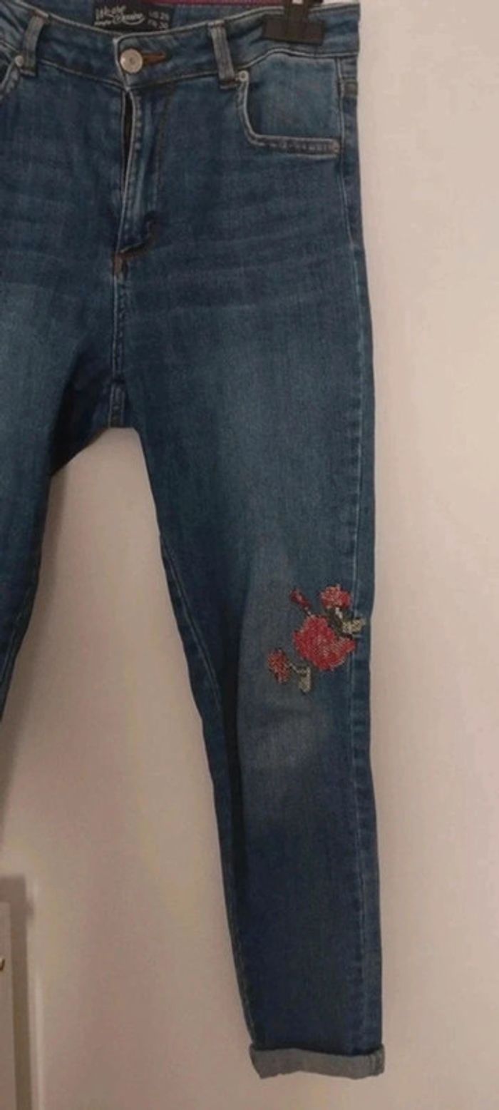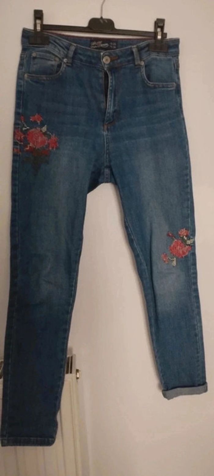 Jean femme avec fleurs brodées taille 36 Jennyfer