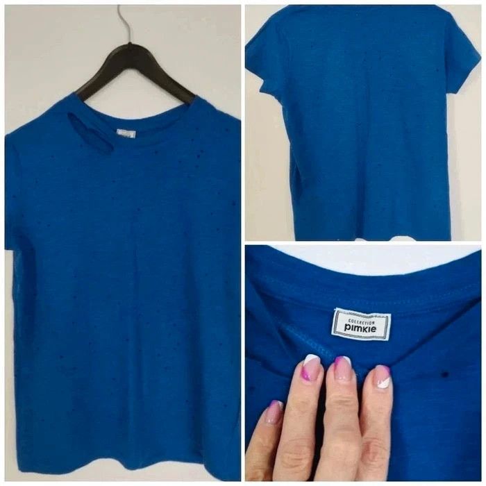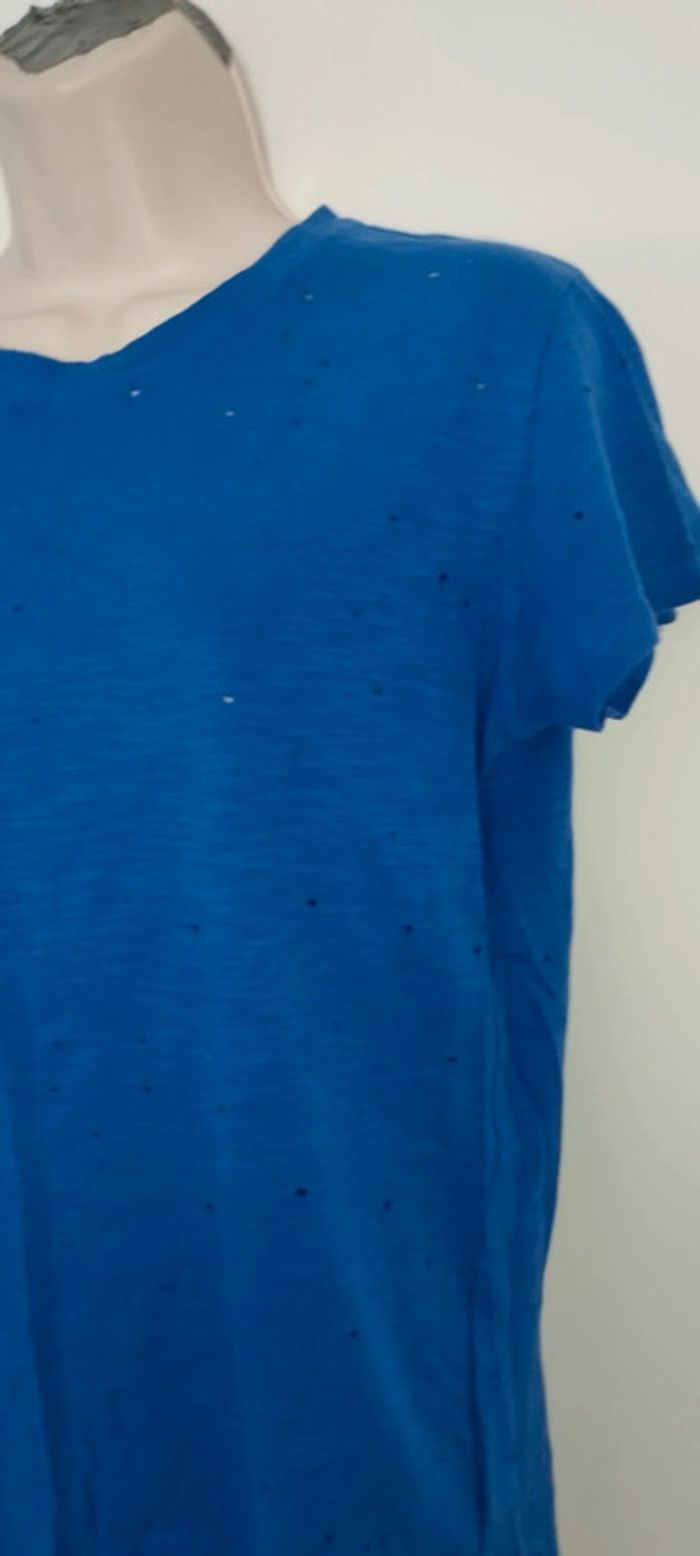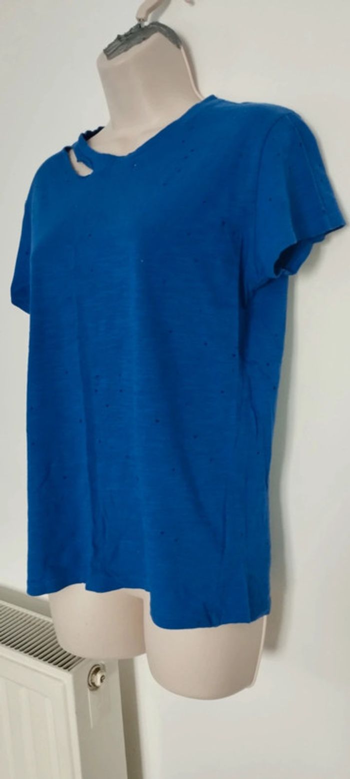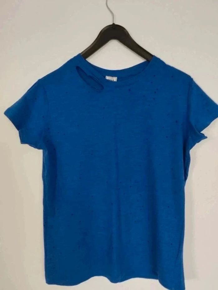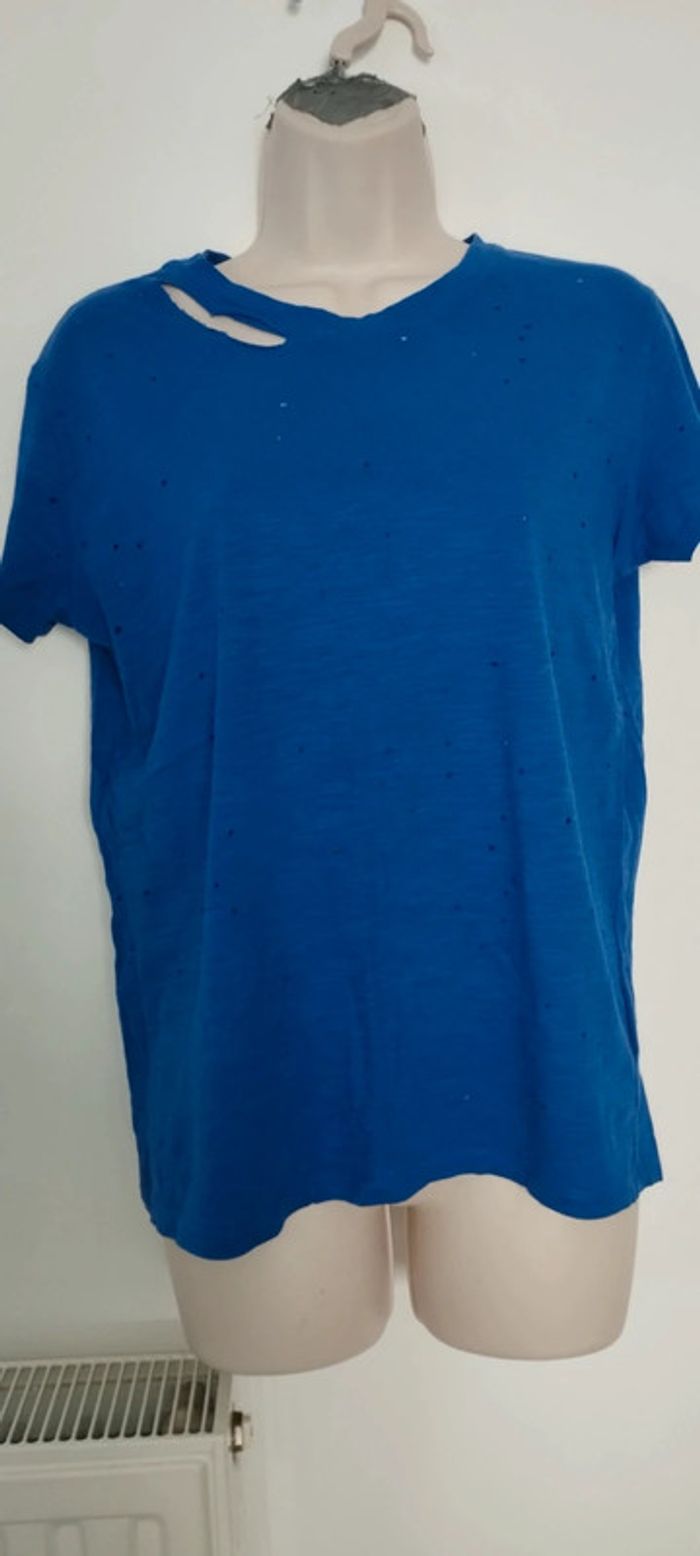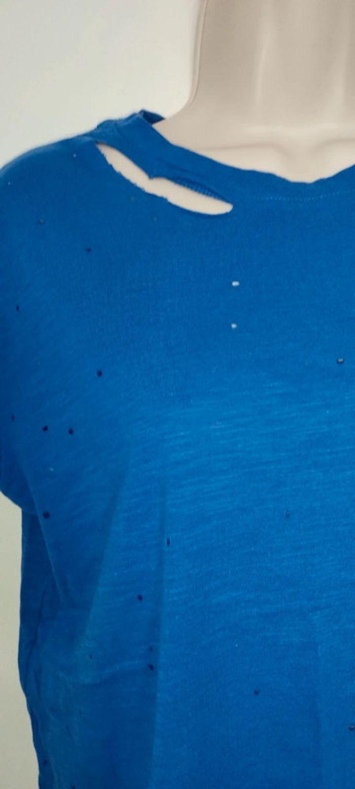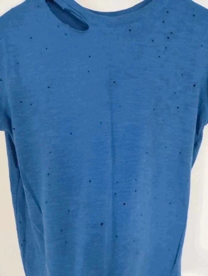 Tee-shirt troués original destroye couleur bleu pour femme taille S (36) Marque Pimkie collection