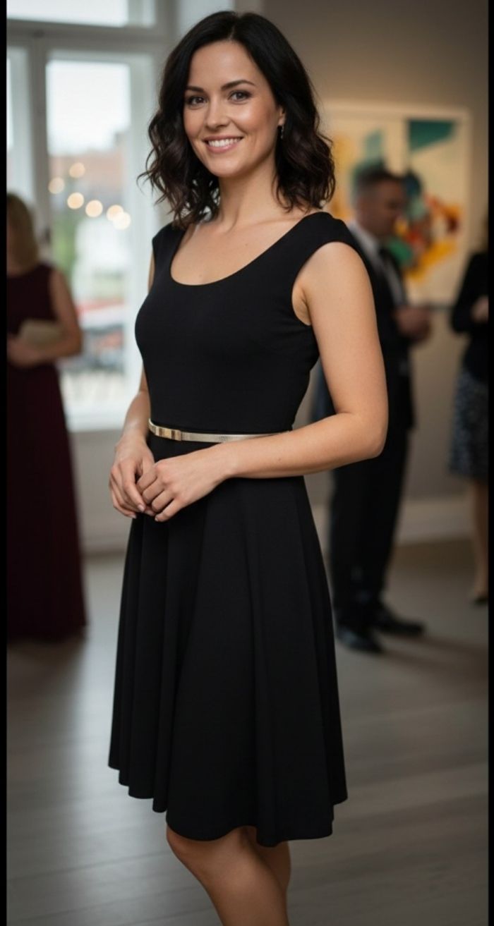 Robe noire anna Field taille 34 Avec ceinture dorée idéale mariage ou occasion arrive au genou