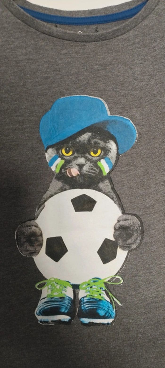 Tee-shirt manches longues garçon taille 8 ans marque Z couleur gris motif chat avec ballon de foot