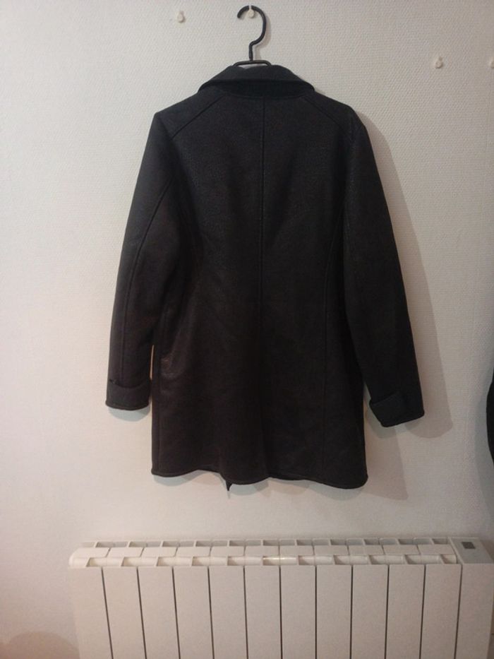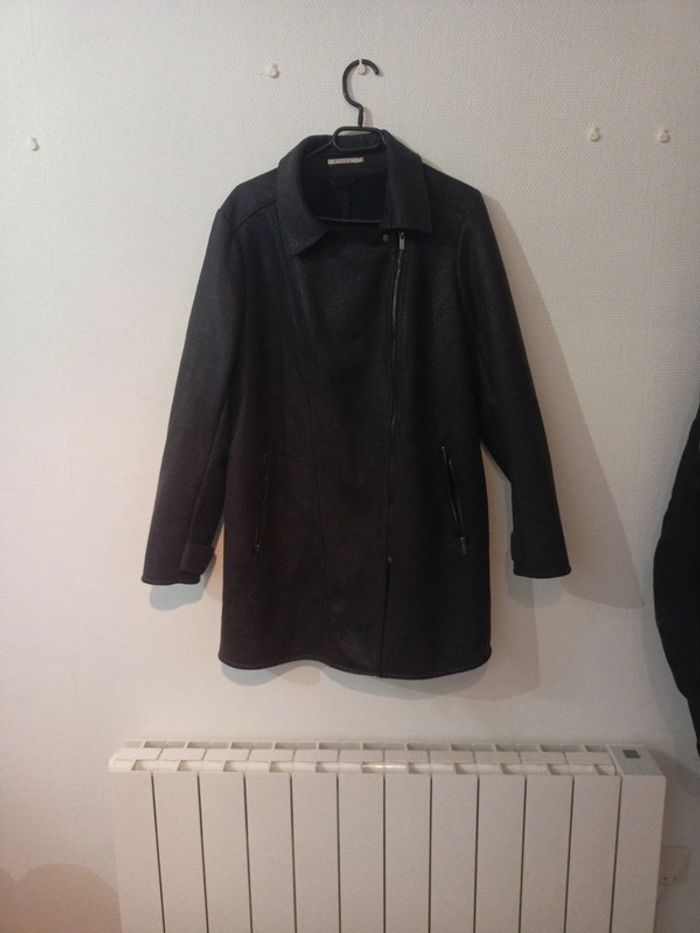 Manteau femme Elora, taille 42. Effet simili cuir, un peu fourré à l'intérieur. Très bon état, pas de trou. Possibilité de faire des lots pour bénéficier des réductions 😊 #emel810_femme42