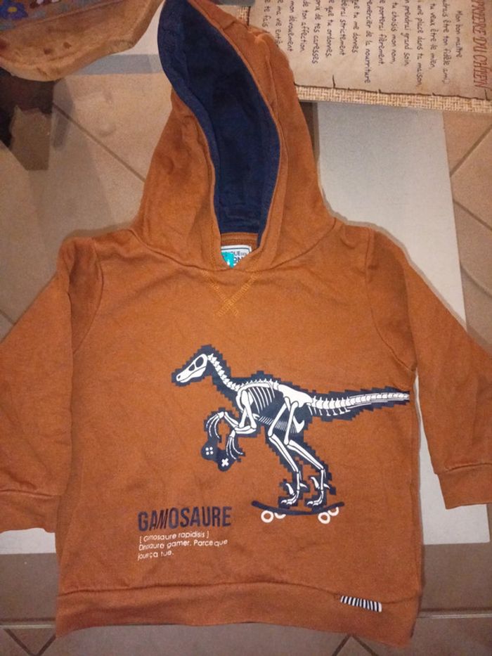 Pull à capuche maron avec un dinosaure devant. Très bon état, taille 3 ans. Possibilité de faire des lots pour bénéficier des réductions 😊 #emel810_troisansgarçon