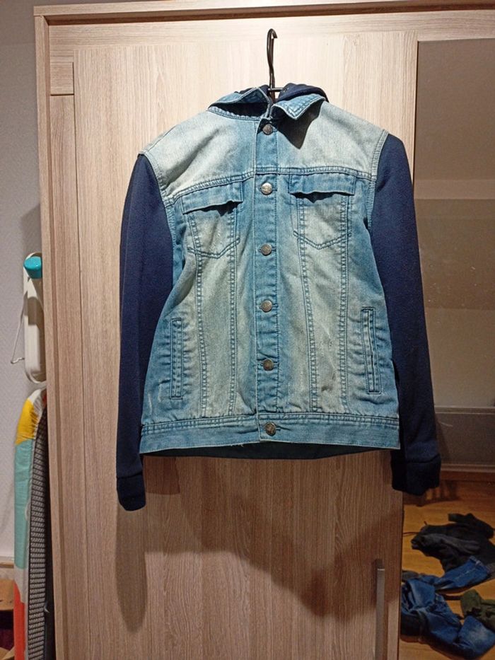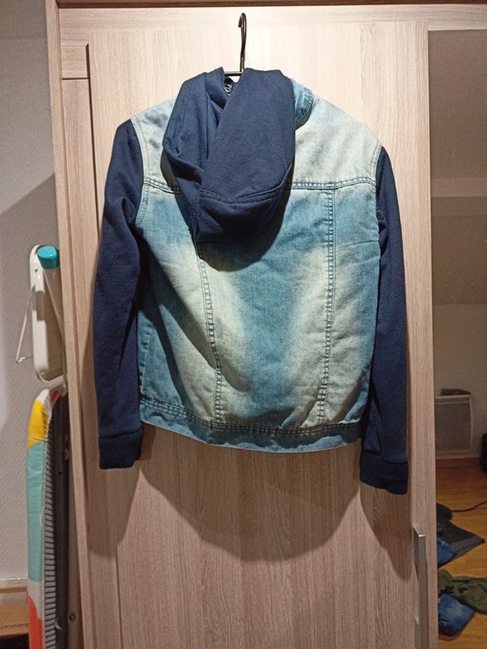Veste en jean très bon état. Taille 14 ans. La capuche se détache, l'intérieur est épais et tiens chaud. Effet usé Possibilité de faire des lots. #emel810_quatorzeansgarçon