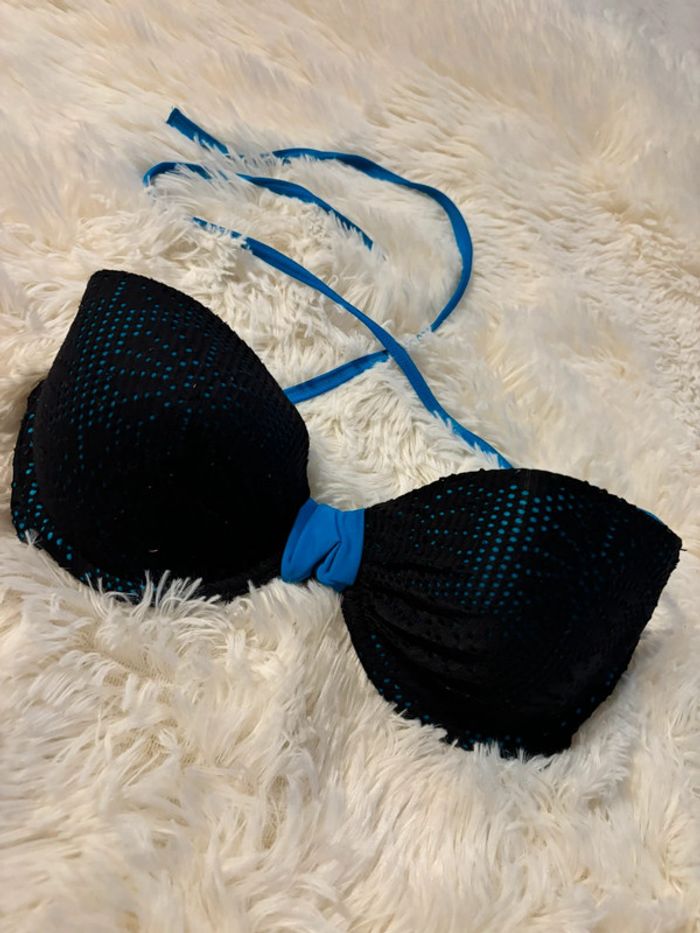 Haut de maillot de bain noir et turquoise Valege 85D Neuf / jamais porté #maevamaylanjulyalingerie
