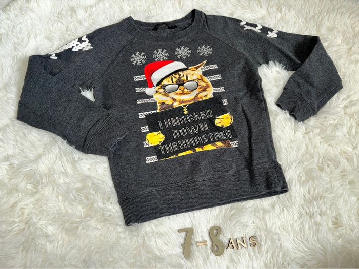 Sweat gris Cool cat 122/128 cm Parfait état #maevamaylanjulya7ansfille #maevamaylanjulya6ansfille