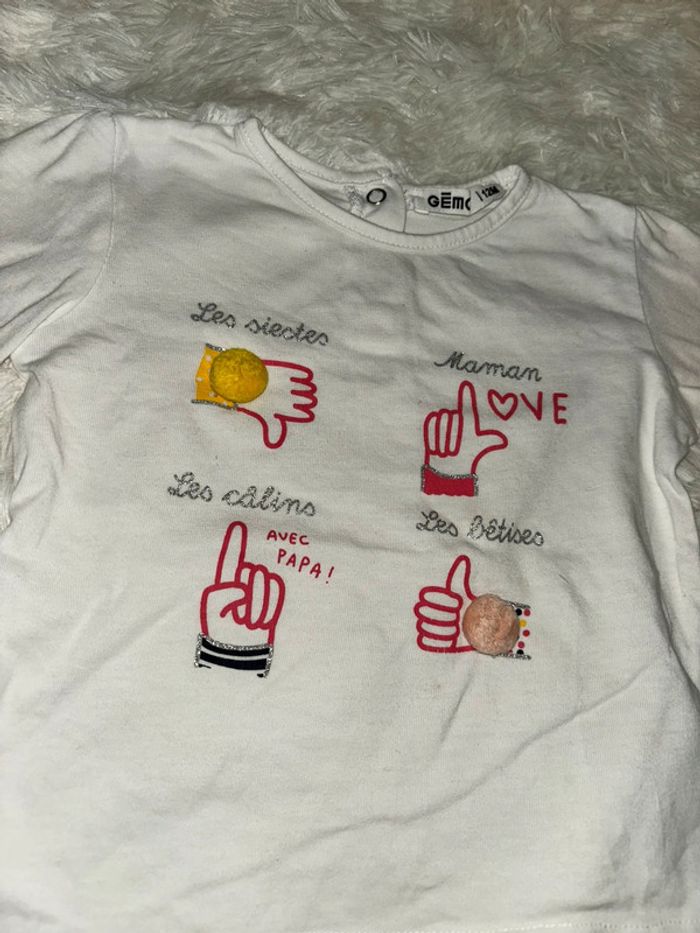 T-shirt à manches longues Gemo 12 mois Parfait état #maevamaylanjulya12moisfille
