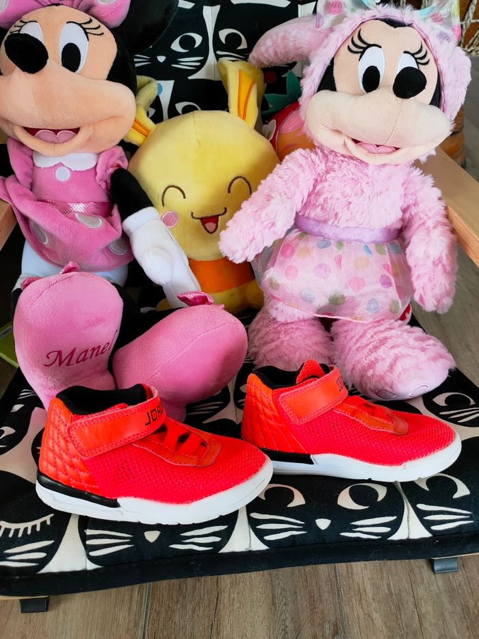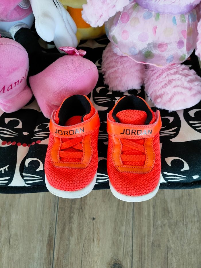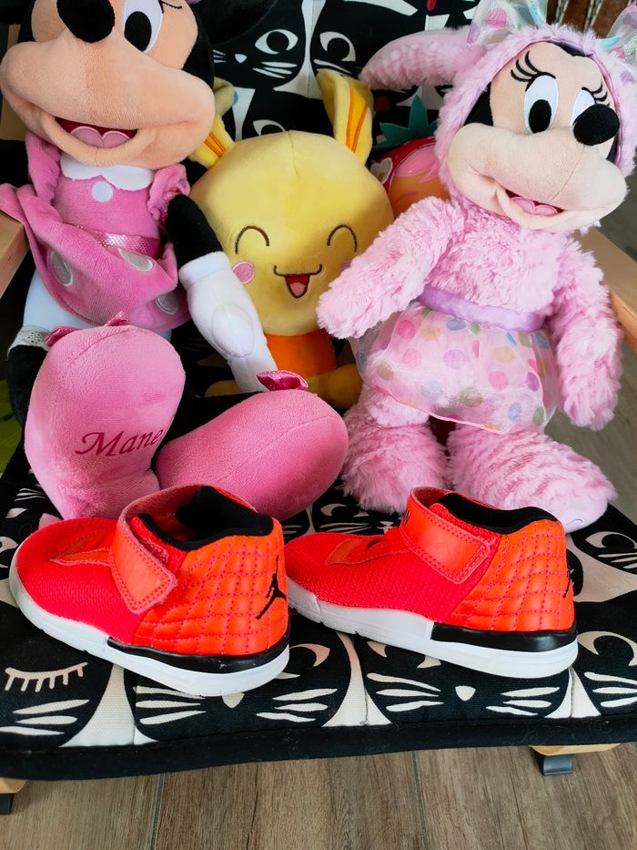 Basket Jordan fille très flashy Rose/Orange Pointure: 22 Elles ont servies mais sont en très bon état. Présence de légers point noir (photo 2) Photo 3: légère trace blanche sur le noir
