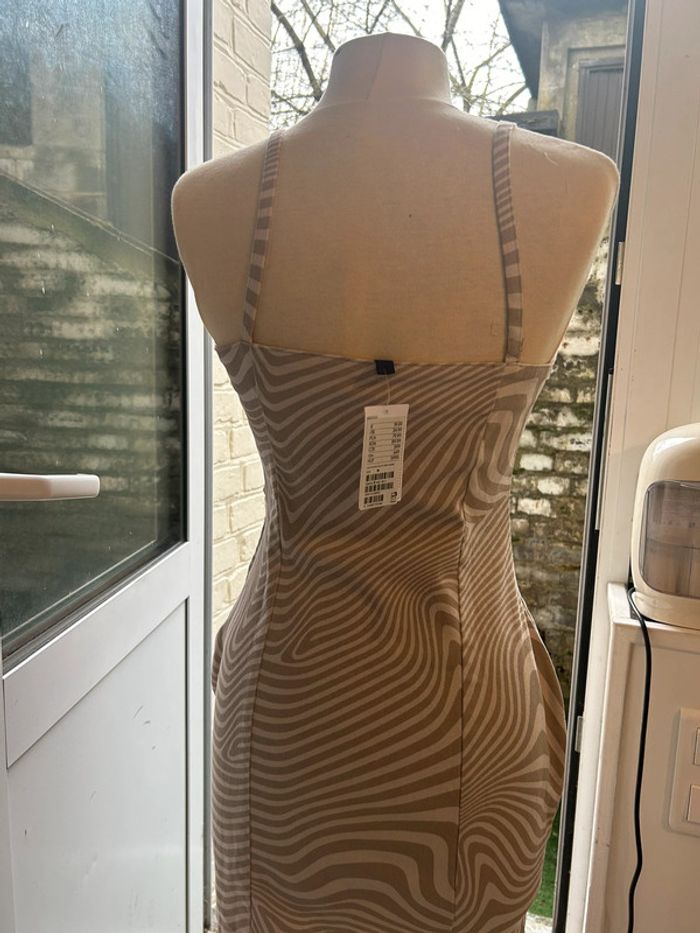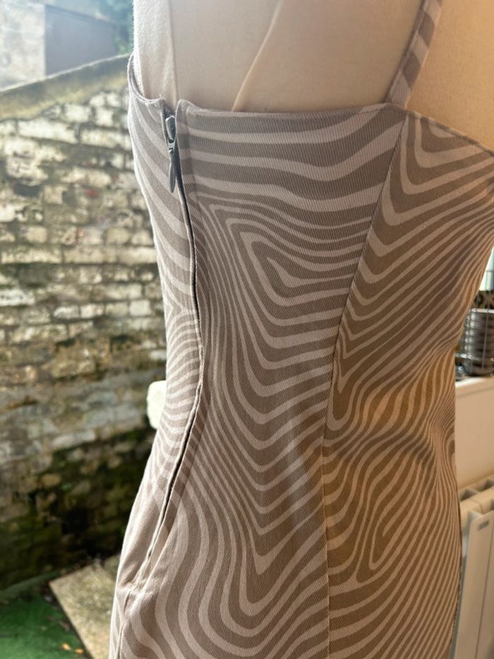 Petite robe d'été à bretelles à imprimé / rayures beiges et taupe - photo numéro 3