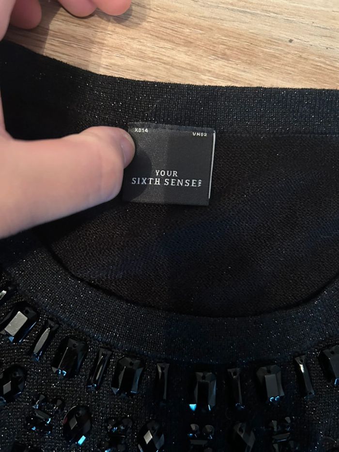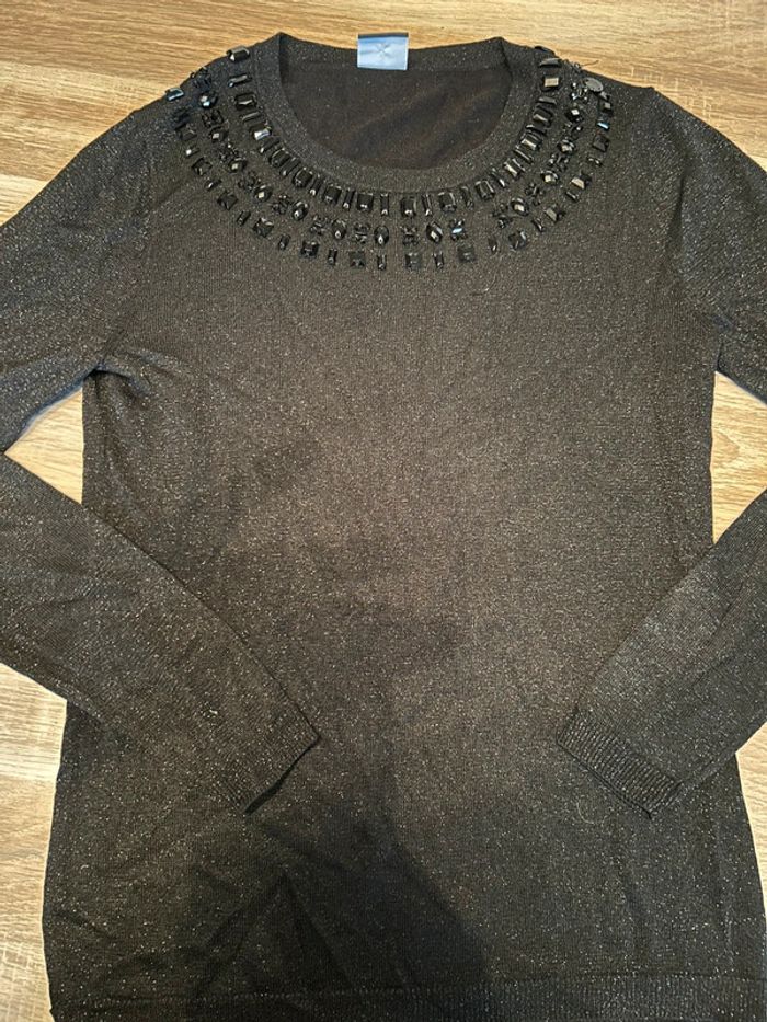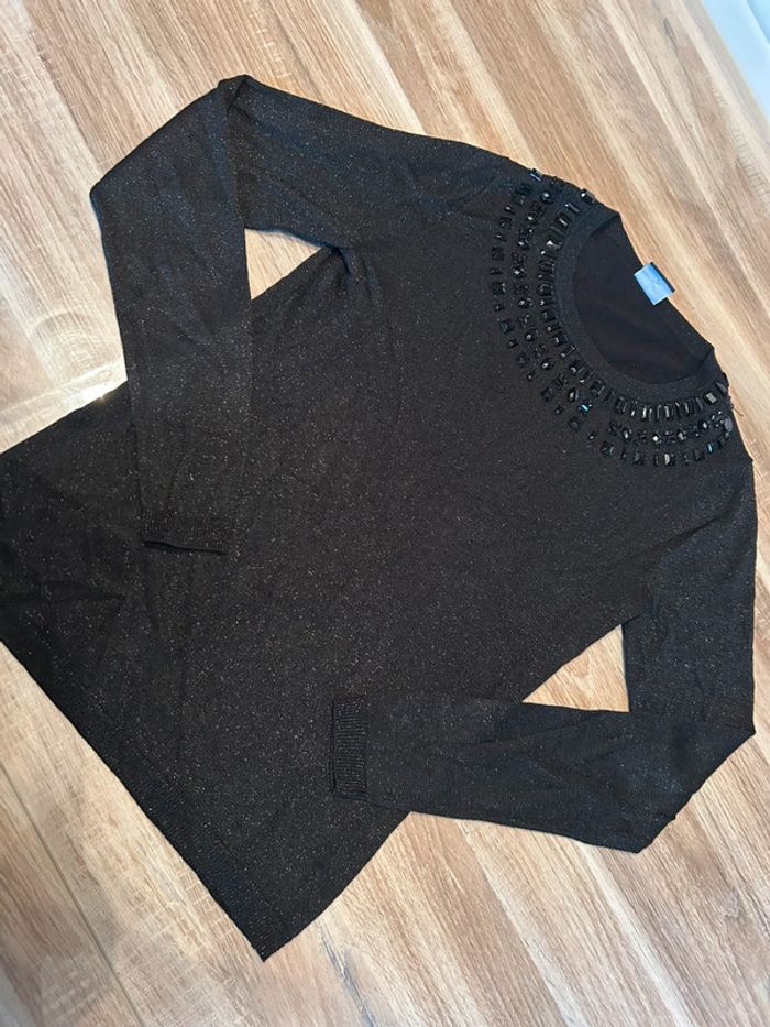 Pull noir à paillettes avec détails perles collier