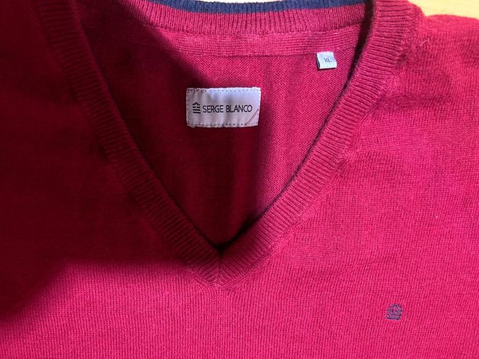Pull rouge bordeaux homme Serge Blanco col V 10% cachemire - photo numéro 7