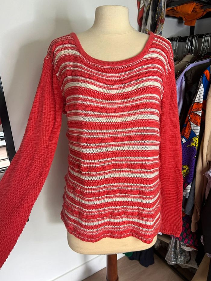 Pull rouge corail / blanc Esprit - photo numéro 2