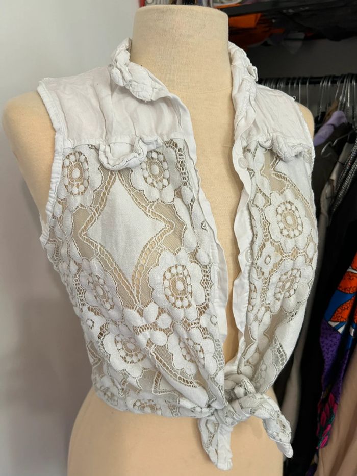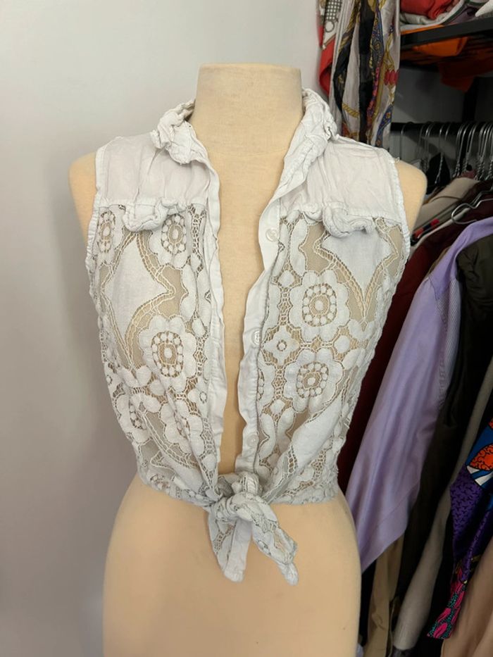 Top crème femme en dentelle - photo numéro 2