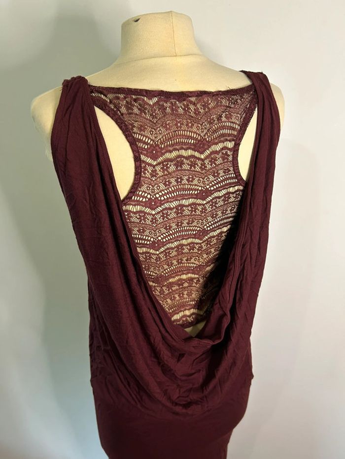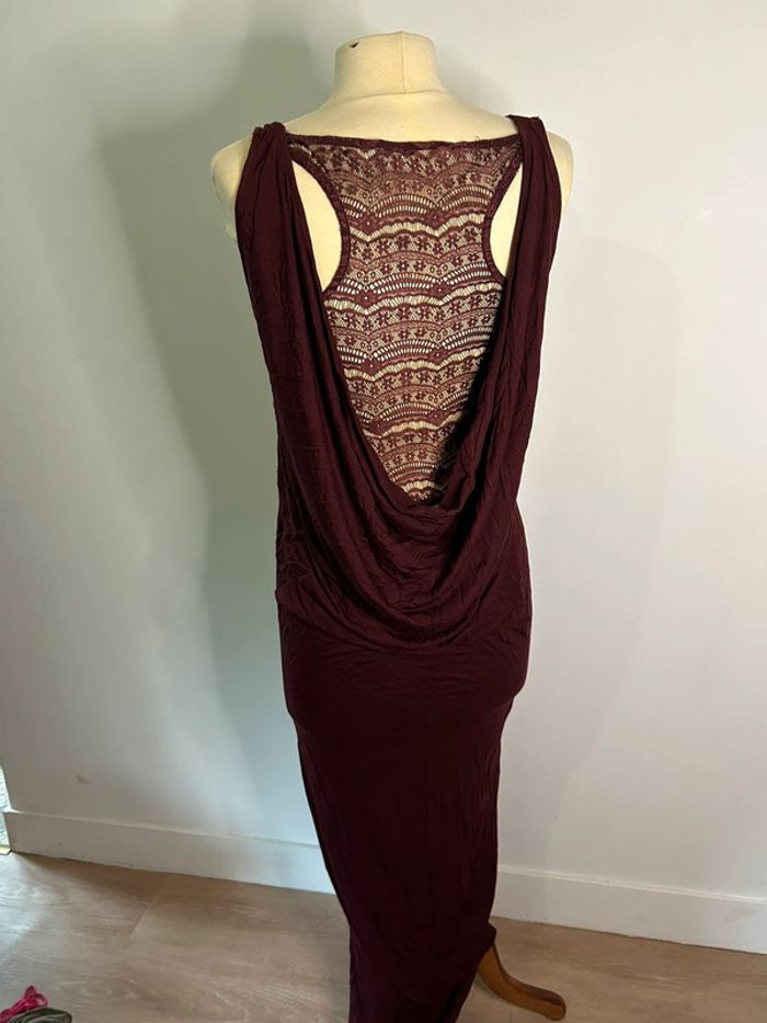 Robe longue près du corps dos nu avec dentelle bordeaux - photo numéro 2