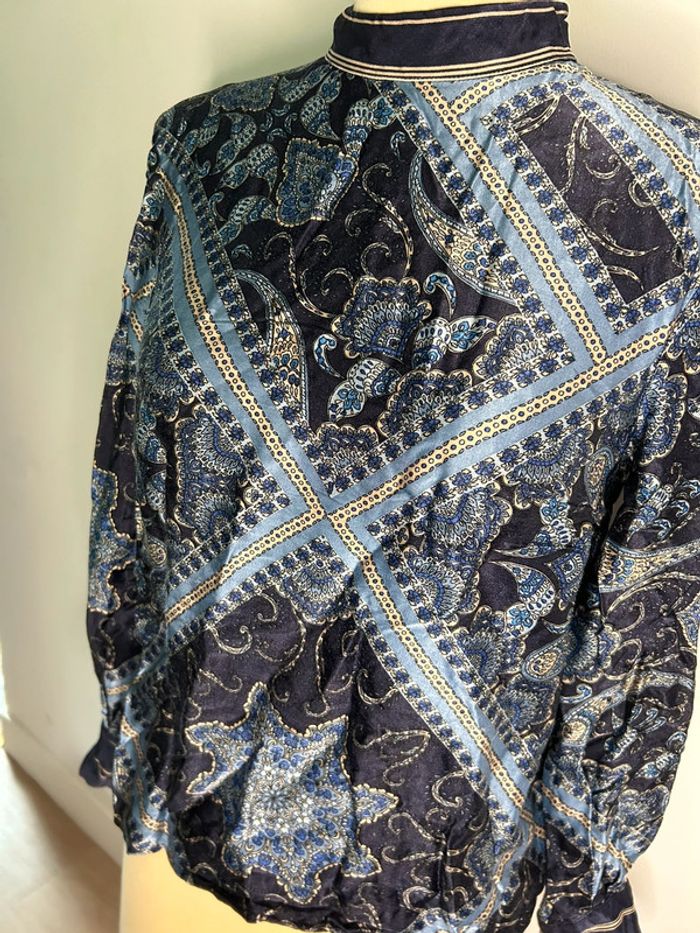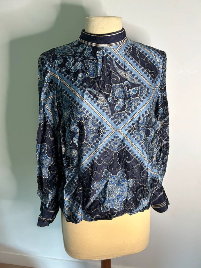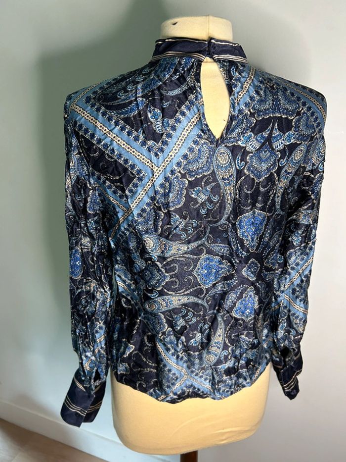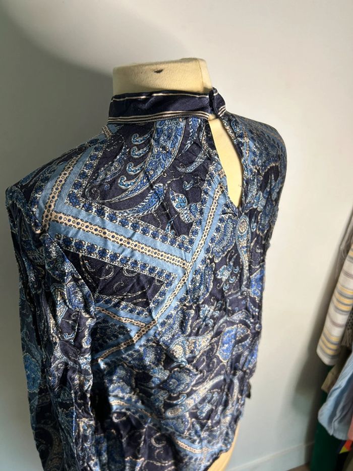 Blouse à motifs bleue marine manches longues ras le cou - photo numéro 5