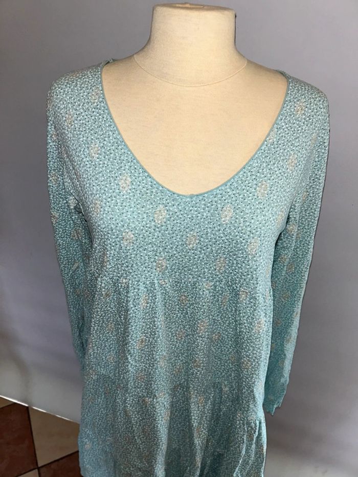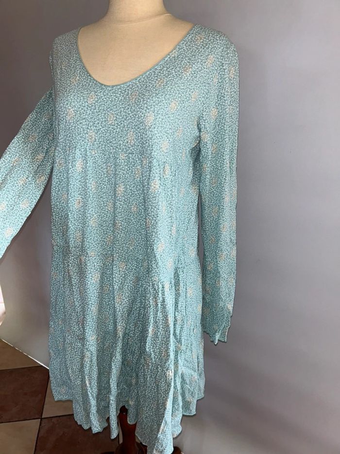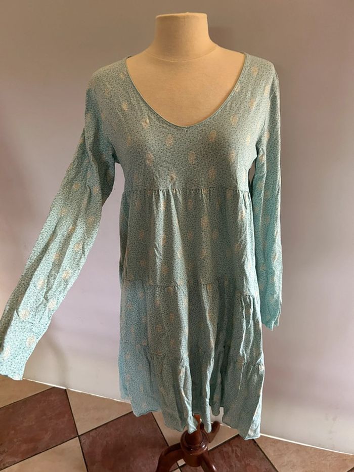 Robe casual en coton bleue turquoise manches longues - photo numéro 2