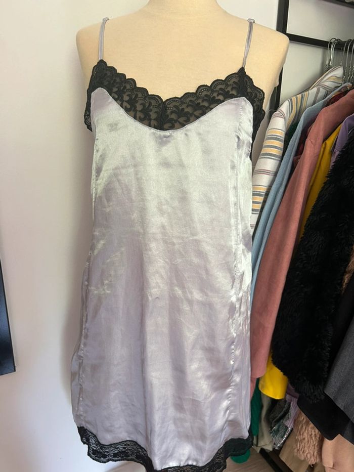 Nuisette effet satin et dentelle grise et blanche - photo numéro 1