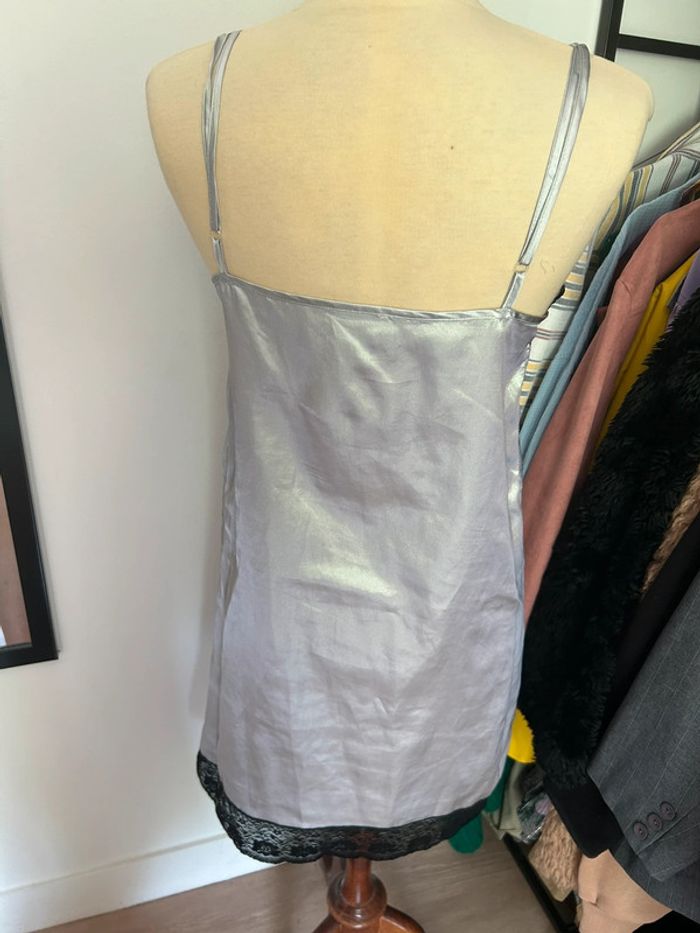 Nuisette effet satin et dentelle grise et blanche - photo numéro 4