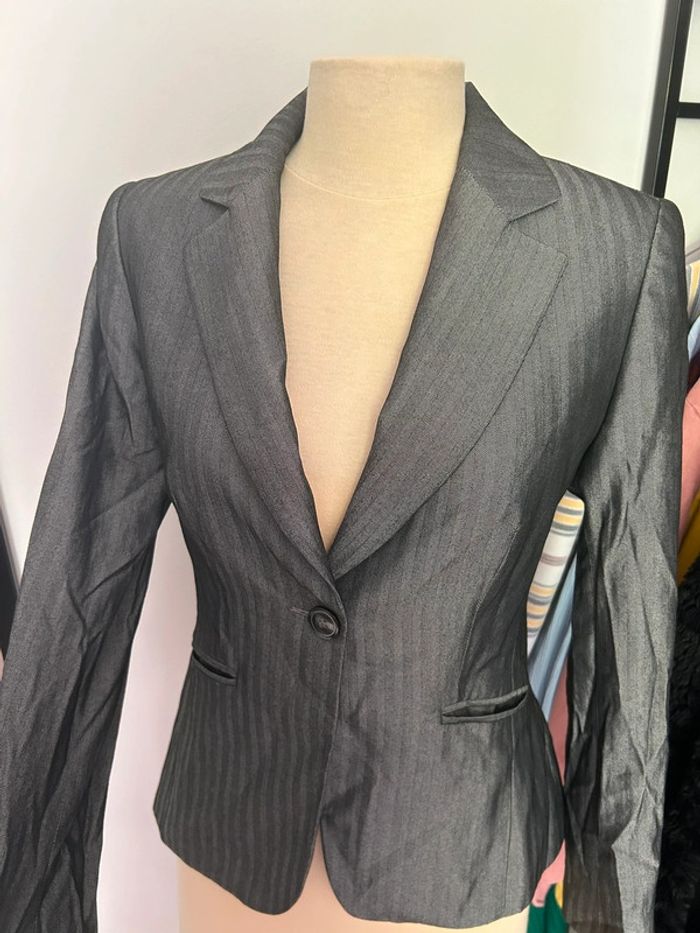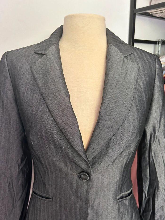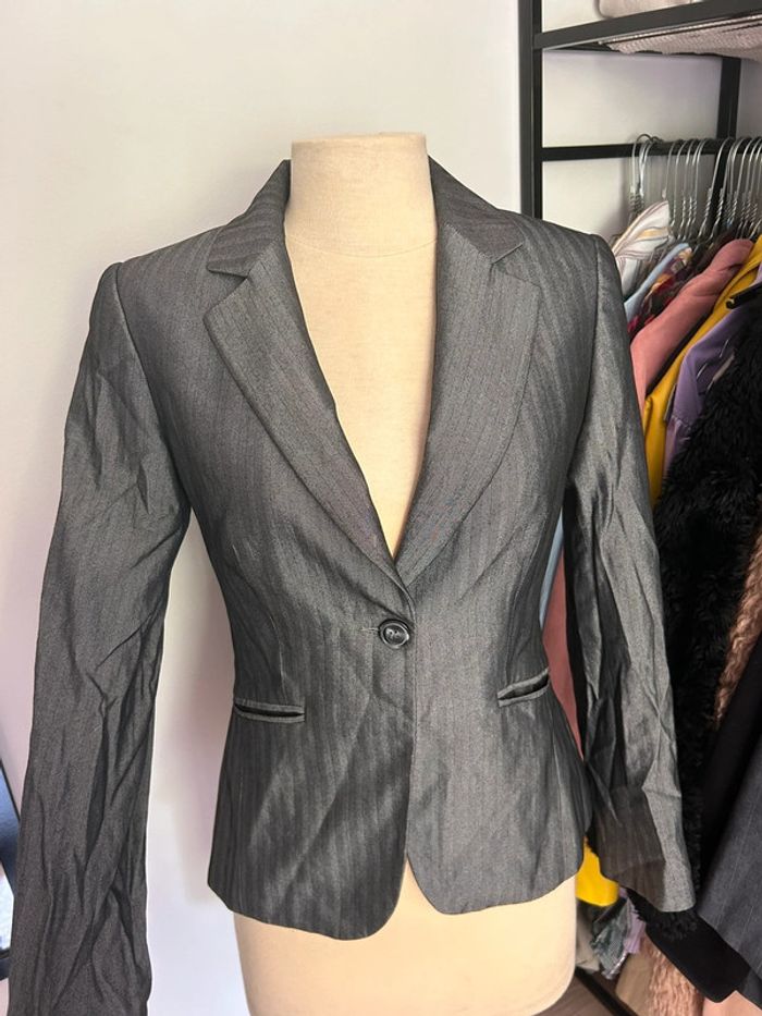Veste blazer grise brillante effet satiné avec épaules structurées - photo numéro 1