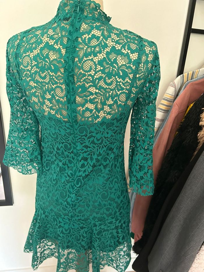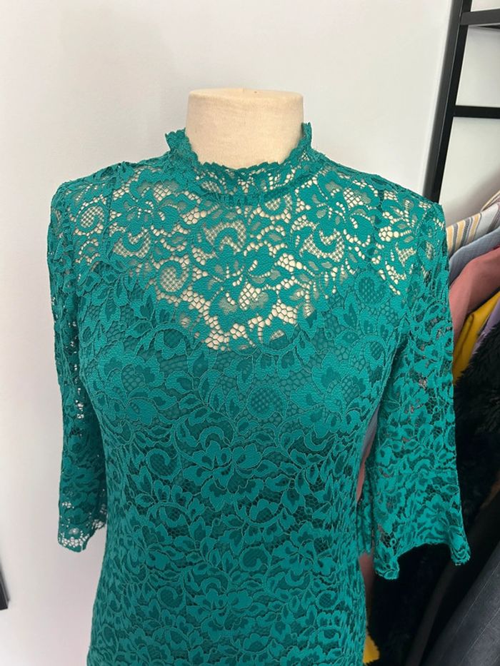 Robe en dentelle manches 3/4 évasées avec dessous bleu canard - photo numéro 2