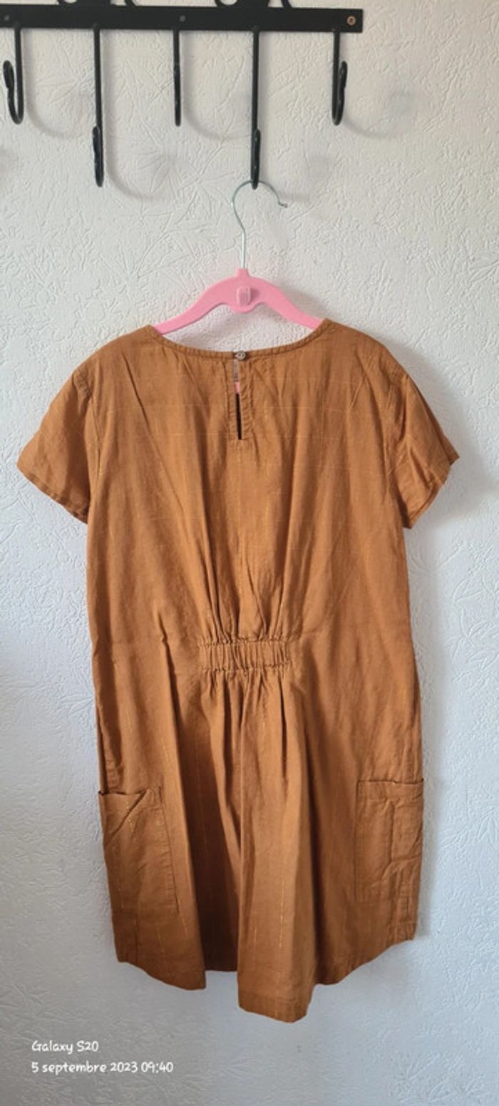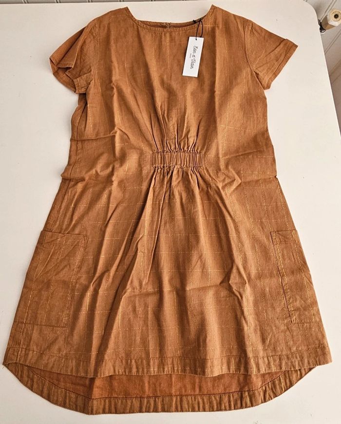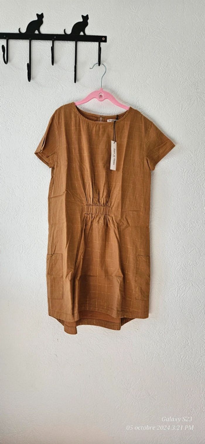 Veuillez lire ma bio pour plus d'informations 👍 Retrouvez mes autres ventes par ici 👇 #10anssandrine0811 Robe avec rayures pailletées Manches courtes Doublée 100% coton Poche sur les côtés Très beau rendu quand elle est portée Couleur camel/moutarde foncée Comme neuve 10 ans, Eden & Victor