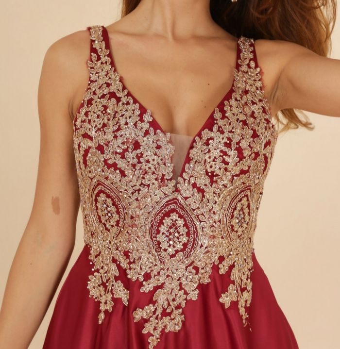Robe soirée princesse bordeaux et doré