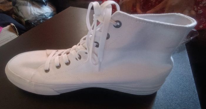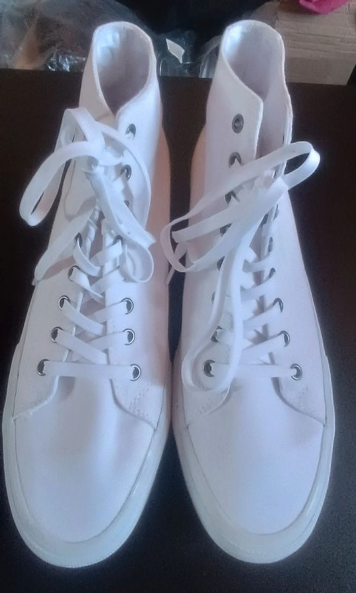 Baskets blanches montantes en très bon état, portées 1 fois, pointure 45