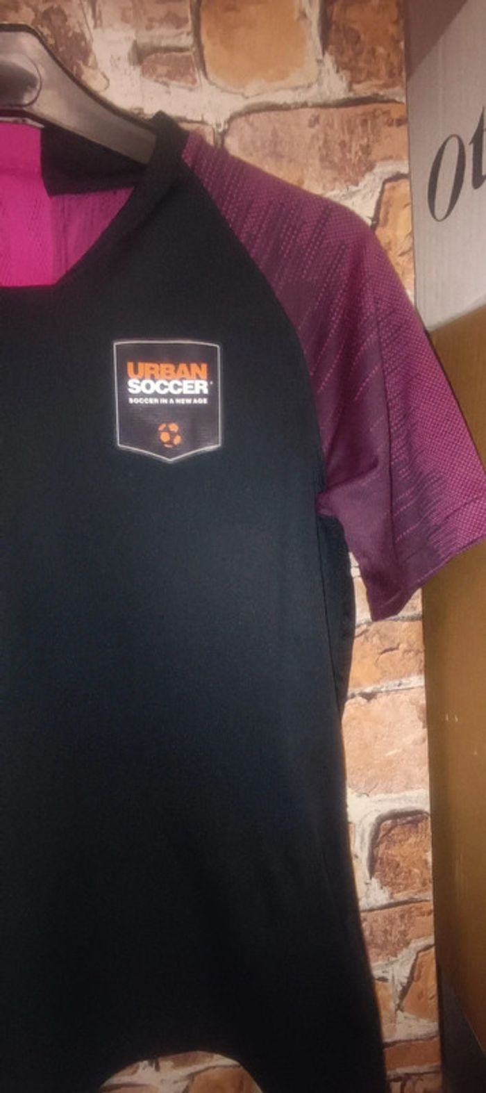 Maillot de sport couleur violet et noir, en très bon état, taille L enfant, correspond à un S adulte