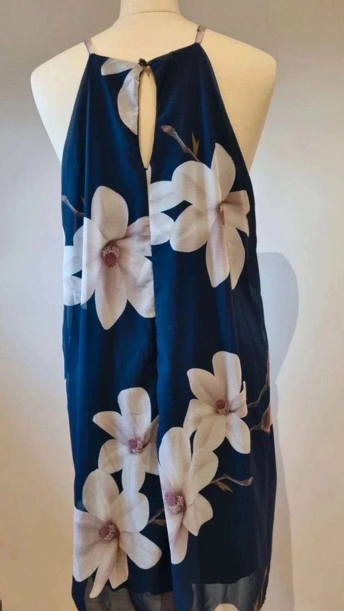 Tres belle robe marine à fleurs de chez New Collection en taille S Doublure à l'intérieur Portée 1 seule fois à un mariage, légères petites rayures devant (dernière photo) 97% polyester 3% elasthanne #dodie33127_FemmeS #dodie33127_Femme36