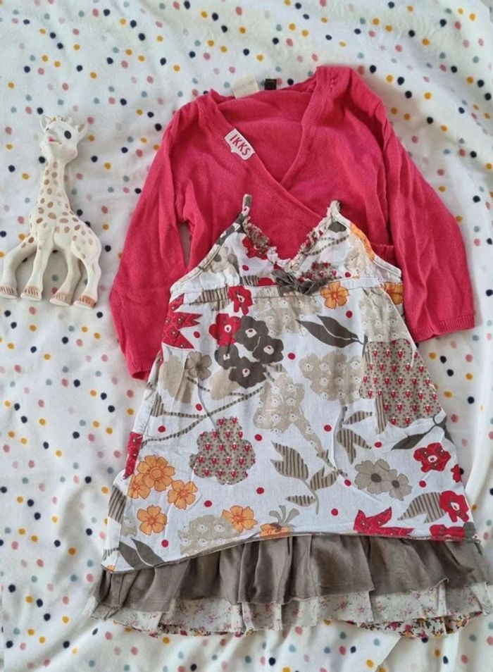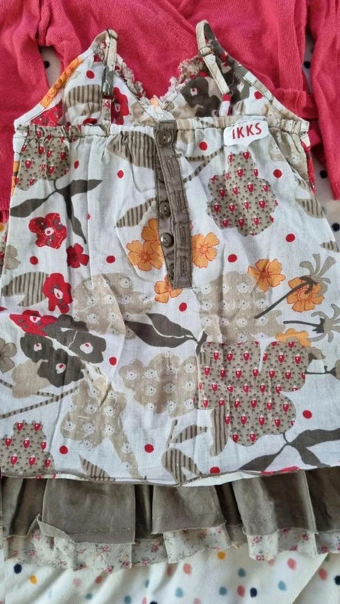 Joli petit ensemble robe + gilet de chez IKKS en taille 12 mois La robe a des Bretelles réglables Le gilet de couleur fushia est un petit cache-coeur Porté 1 seule fois #dodie33127_Fille12mois