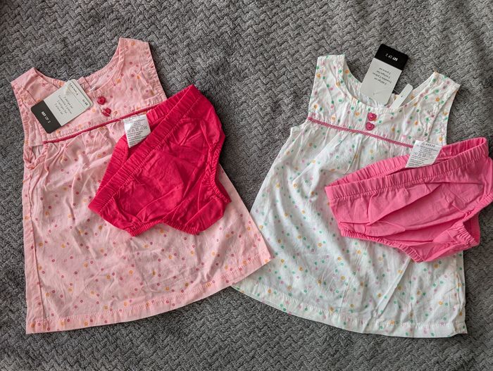 NEUF, lot de 2 robes + culottes, 68 cm/6  mois - photo numéro 1