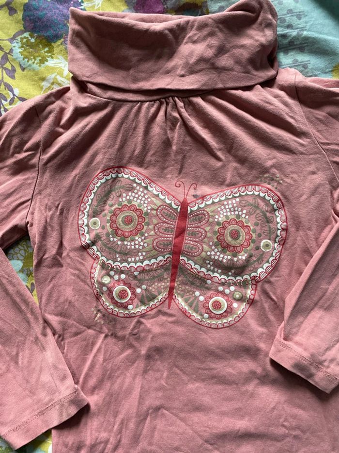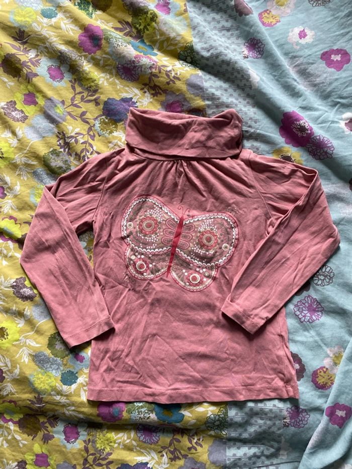 En bon état à part deux petites taches autour du papillon voir photo Réduction sur les lots #souspullfille #vertbaudet #souspullvertbaudet #souspullcolroulé #souspullrose #souspull