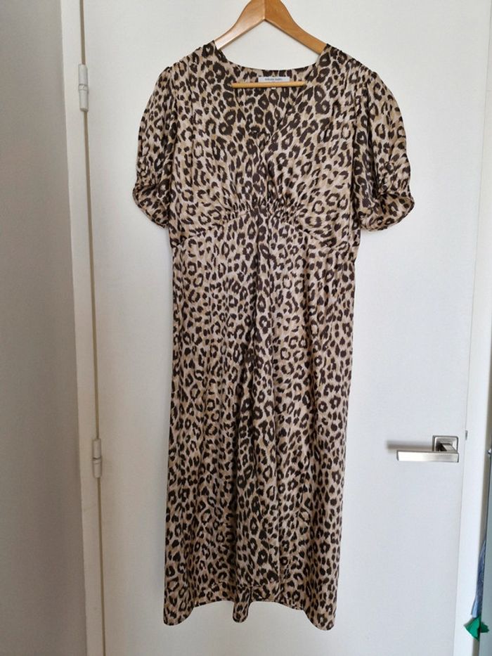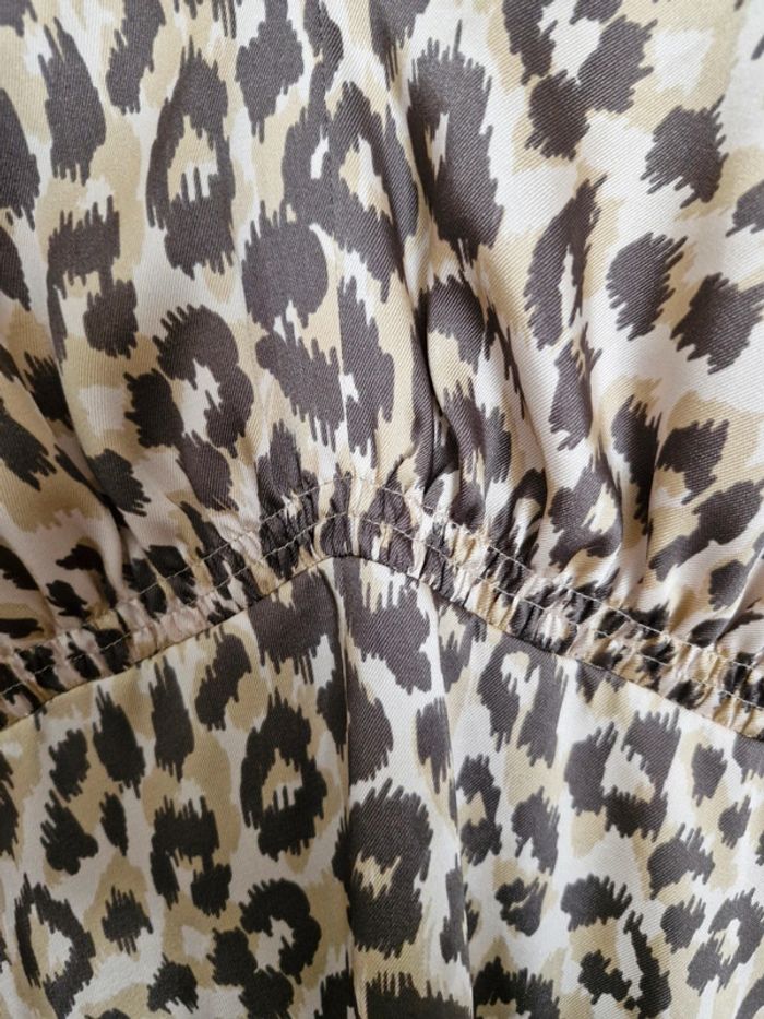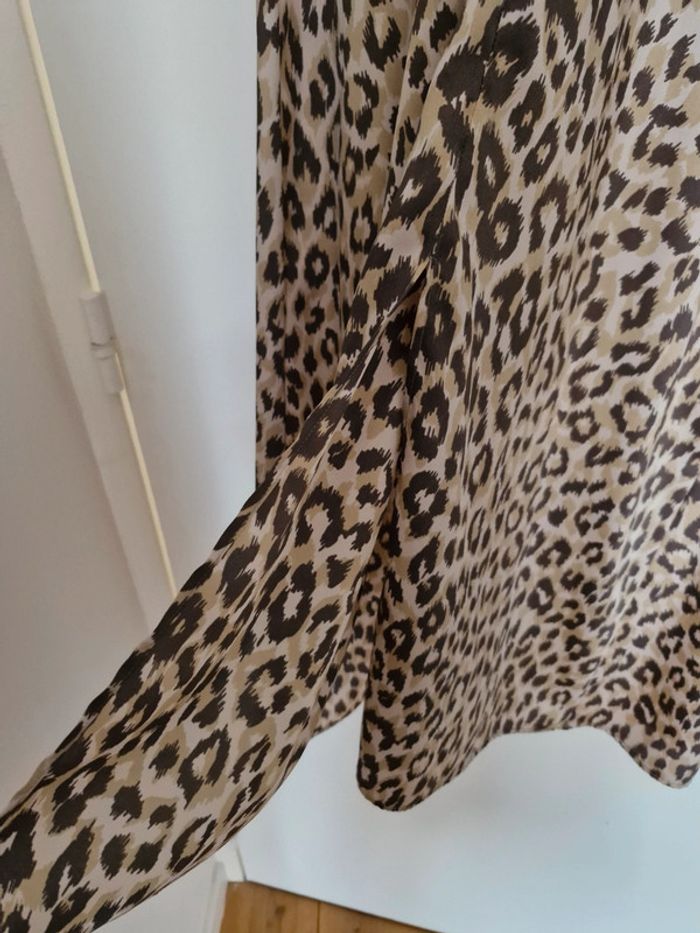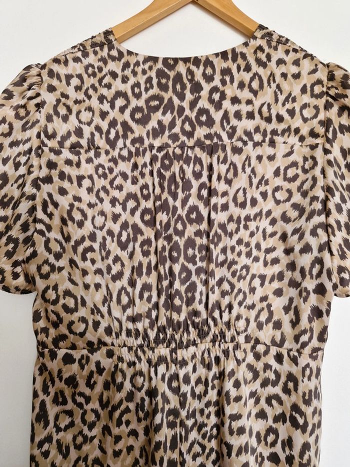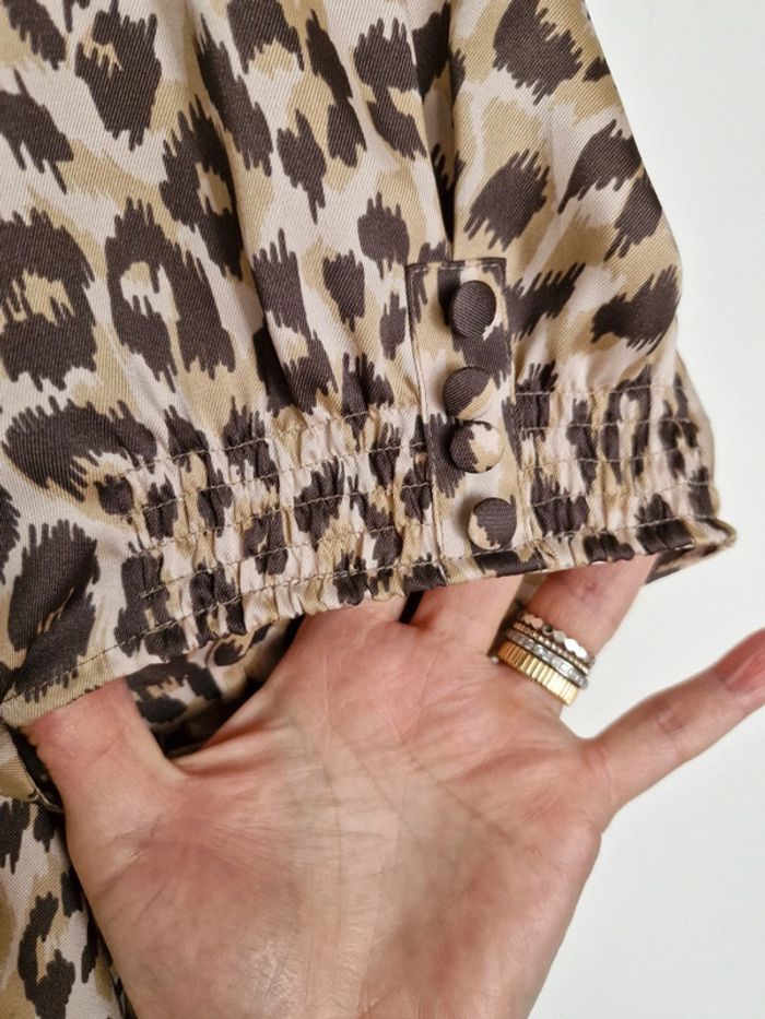 Très bon état, impeccable, imprimé léopard, légère et fluide, taille 46 mais correspond à un 44. Manche courte légèrement ballon avec petits boutons. Très élégante et bien coupée. 100 %polyester
