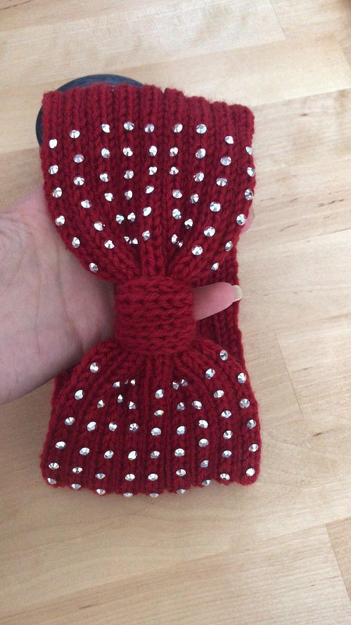 Headband bandeau laine rouge et strass - photo numéro 3