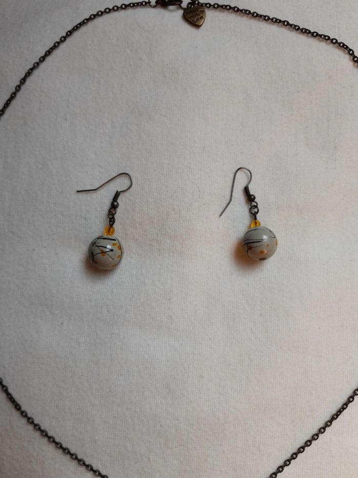 Ensemble bijoux femme fantaisie boucle d'oreille et sautoir fait main - photo numéro 1